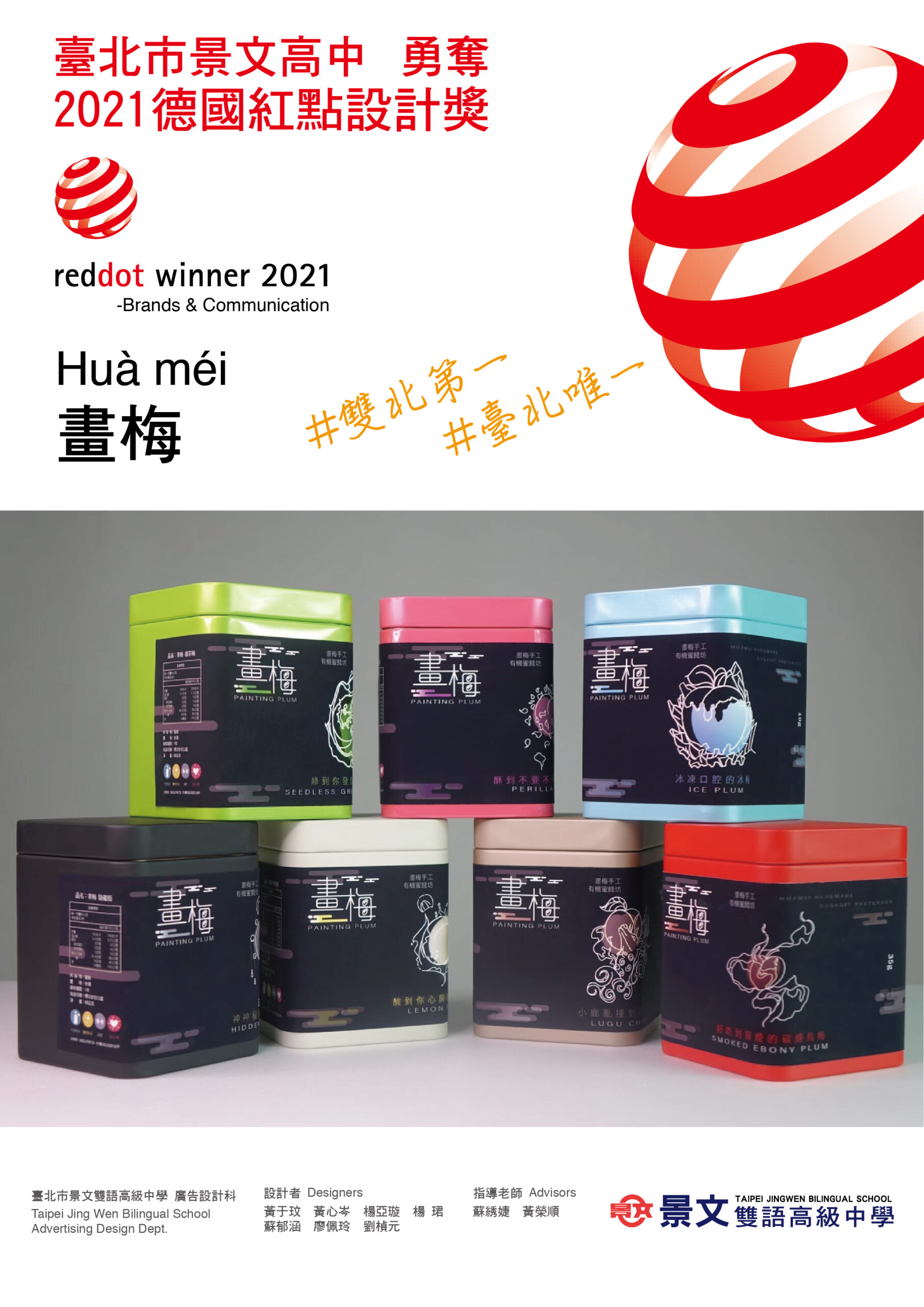 狂賀!跟大家說個好消息, `景文高中設計群廣設科` 勇奪 *2021德國紅點設計獎* ,德國紅點設計獎是全球規模最大、最有影響力的設計競賽之一。此次比賽與中國科大視傳系合作共同指導奪得紅點獎,是 *雙北第一臺北唯一獲獎* 的高中學校,證明了景文高中設計群學生的能力與老師們的努力,是學習設計的最好選擇!